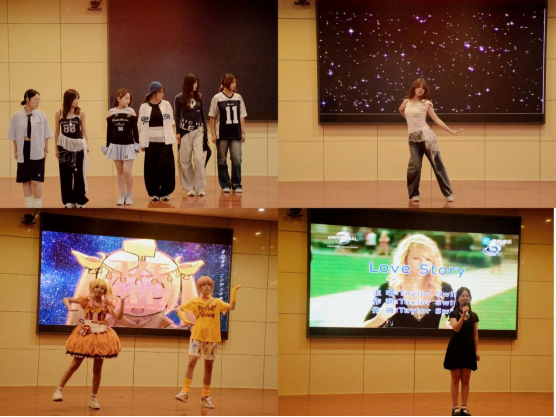 晚会在翻译学院舞蹈队活力满满的《Fancy》中拉开帷幕,灵动舞姿瞬间点燃全场热情,尽显青年学子的朝气与活力。随后,多元节目轮番登场,为观众带来沉浸式视听体验:韩嘉欣以干净温润的声线演绎《Diamonds》,细腻的情感表达直抵人心,赢得满堂喝彩;李璐璐的《中华武术》表演刚柔并济,一招一式间尽显中华传统文化的磅礴魅力;舞蹈类节目更是风格迥异、亮点纷呈——汪林润的《Jazz串烧》节奏鲜明、热情奔放,刘民心的《Drama》气场全开、活力四射,Nyamo次元社的《宇宙香料》则俏皮灵动,舞者们的每一次跳跃与旋转,都将青春的蓬勃力量展现得淋漓尽致,让晚会气氛持续升温,高潮迭起。